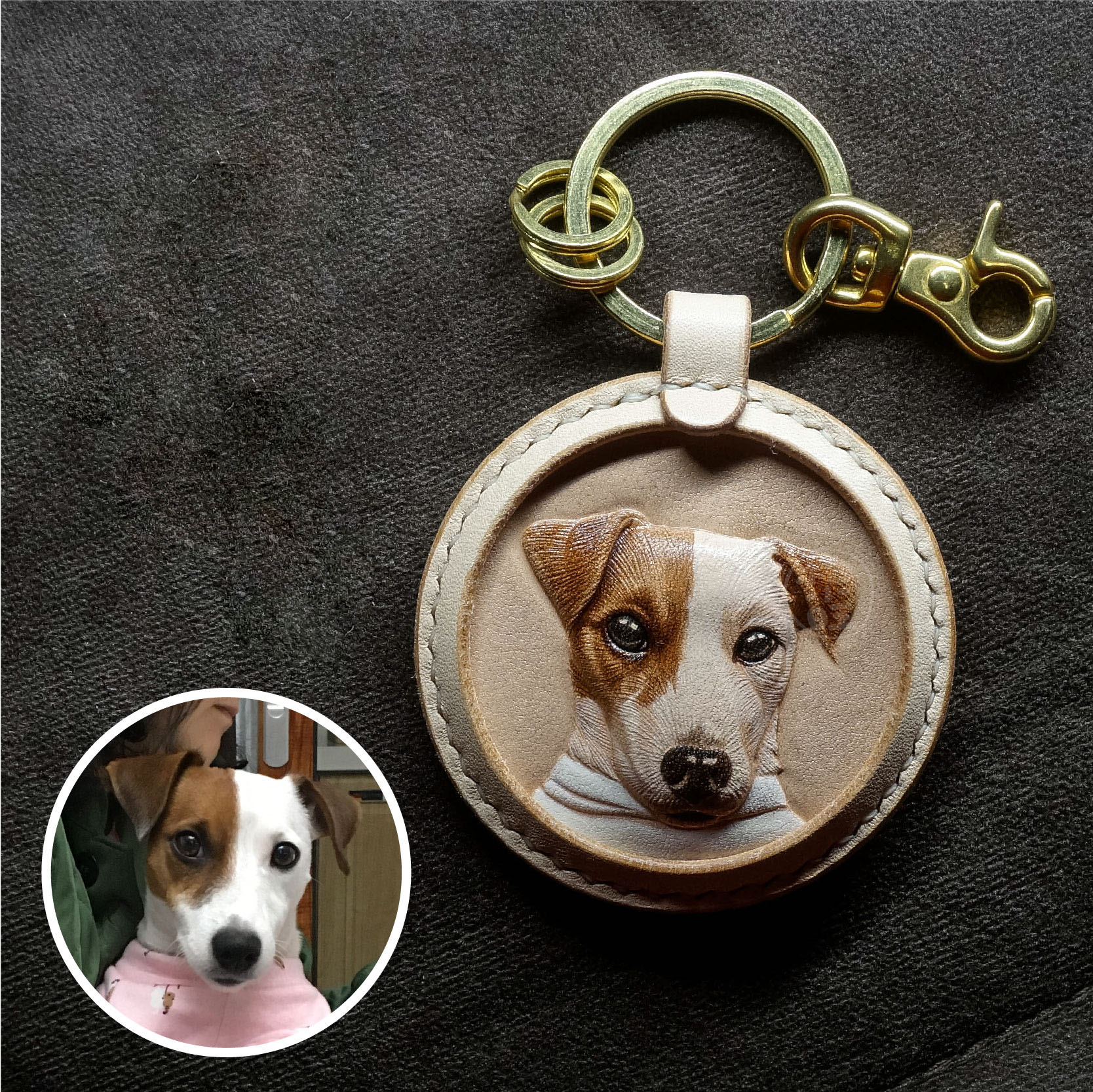 Pure Hand-Carved Leather Carving Pet Keychain (Regular Production Time:1-2 months)