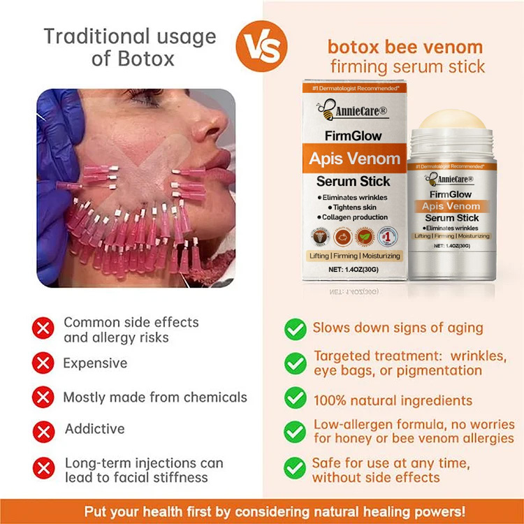✓ Effective Results: AnnieCare® FirmGlow Apis Venom Serum Stick delivers noticeable results. providing visible improvements to your skin's tone. texture. and firmness.