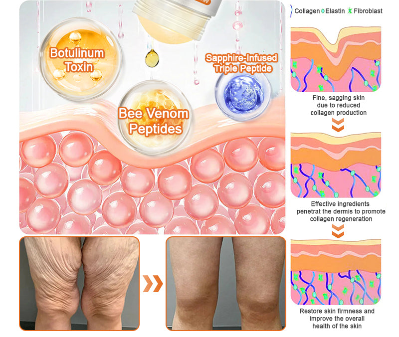- Bee Venom Peptides: Bee venom peptides mimic the skin's natural response to micro-stimulation. stimulating the production of collagen and elastin. This can instantly tighten. firm. and blur the appearance of the skin. providing a lifting effect.